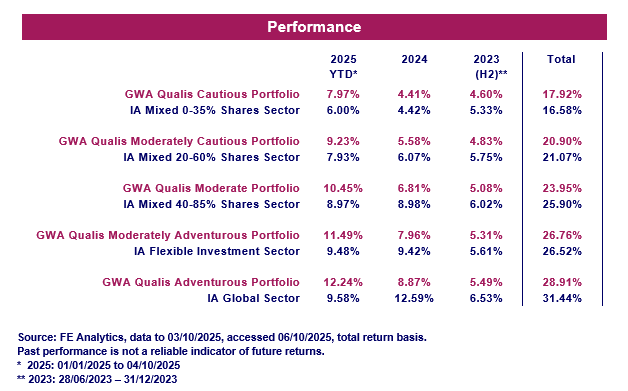Please note that any performance figures are provided for information purposes only. The performance of your own investments may deviate from the returns shown below due to a number of factors, including product charges, the timing of contributions & withdrawals and portfolio rebalancing.  Performance relates to the GWA Portfolios only; if you hold other investments performance will be different.