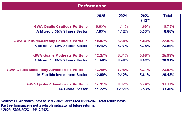 Please note that any performance figures are provided for information purposes only. The performance of your own investments may deviate from the returns shown below due to a number of factors, including product charges, the timing of contributions & withdrawals and portfolio rebalancing. Performance relates to the GWA Portfolios only; if you hold other investments performance will be different.